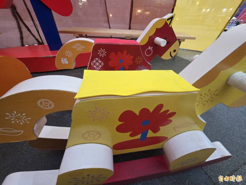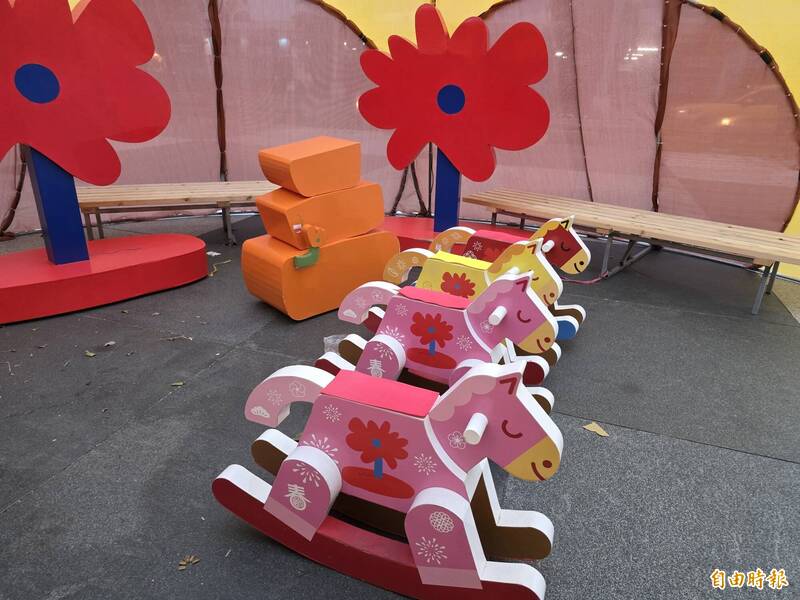 主燈之一「小石花樂園」內部的木馬,剛開幕第一天軟墊都已經翹起。(記者花孟璟攝)