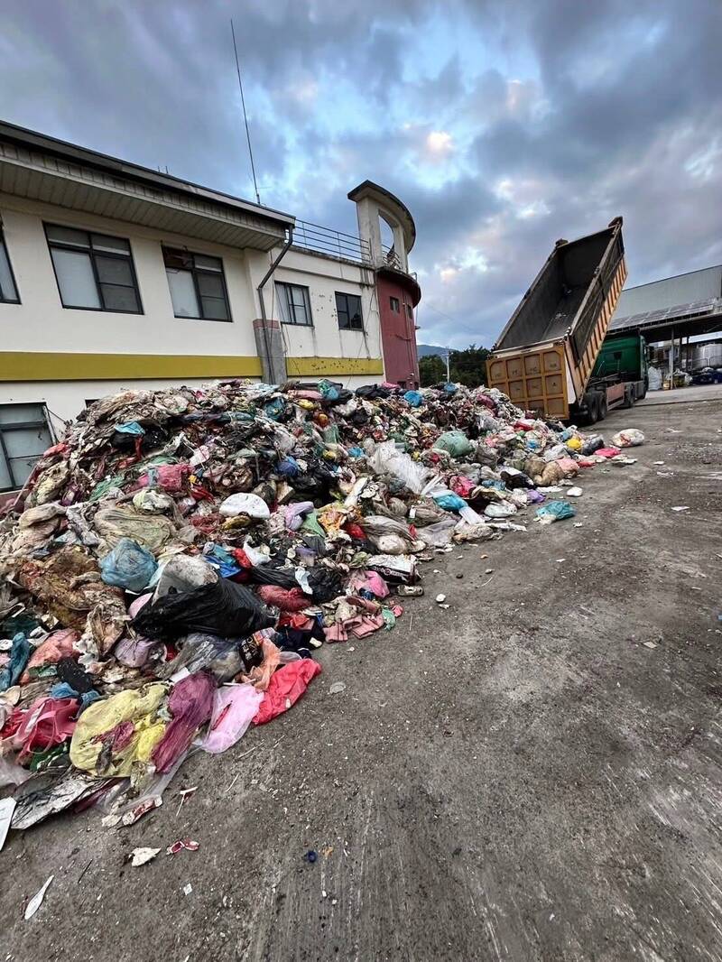 這一車的垃圾被偵測出輻射過量遭退運,7日傍晚運回埔里,整車垃圾卸下。(埔里鎮清潔隊提供)