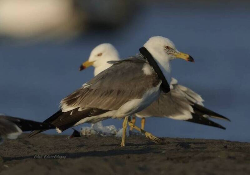 陳俊強近日在汕尾地區發現1隻嘴巴被漁網纏住,隨身帶著1塊保麗龍的黑尾鷗,無獨有偶,台東卑南溪口同期也出現受困黑尾鷗,他說,最近幾年東海岸和西海岸都陸續出現類似畫面,高雄林園、澎湖和台東富岡都曾出現過「黑頸圈黑尾鷗」