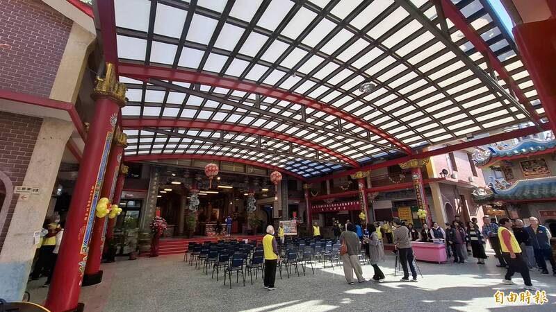 苗栗市義民廟將進行廟埕廣場空間活化工程,包括祭祀大殿水泥磨石子及遮雨棚等改善。(記者張勳騰攝)