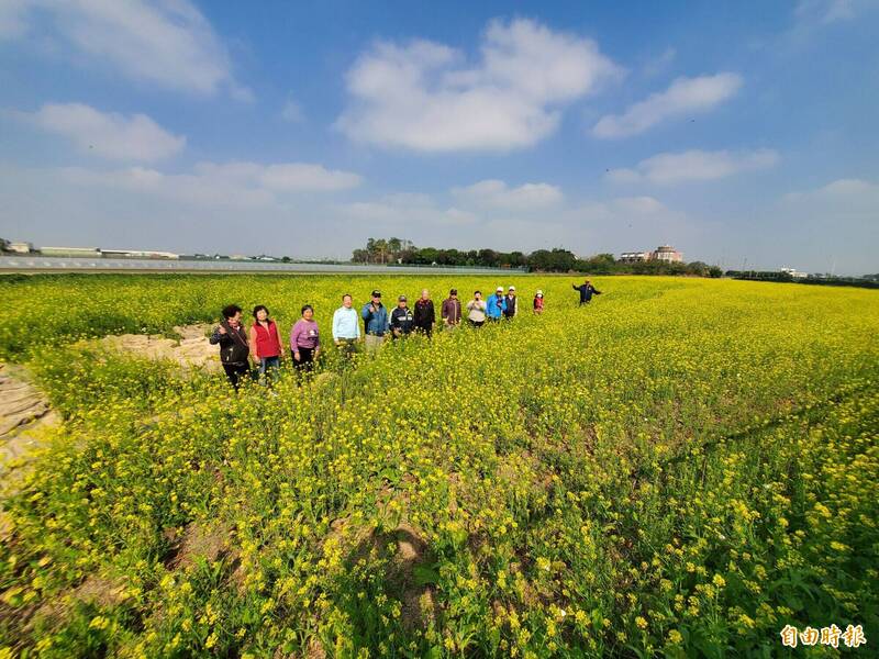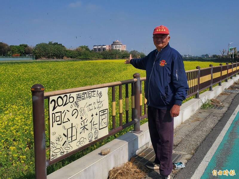 在雲林二崙鄉消防分隊旁有一處「阿公の油菜花園」,開滿黃色花海,吸引許多路過民眾下車賞花拍照,看到很多人在花田裡開心拍照,73歲園主廖而長滿意說,這是他為返鄉過年的鄉親特地打造的大花園,讓他們回鄉陪老人家也有地方可以走走,聞聞充滿花香的家鄉空氣。