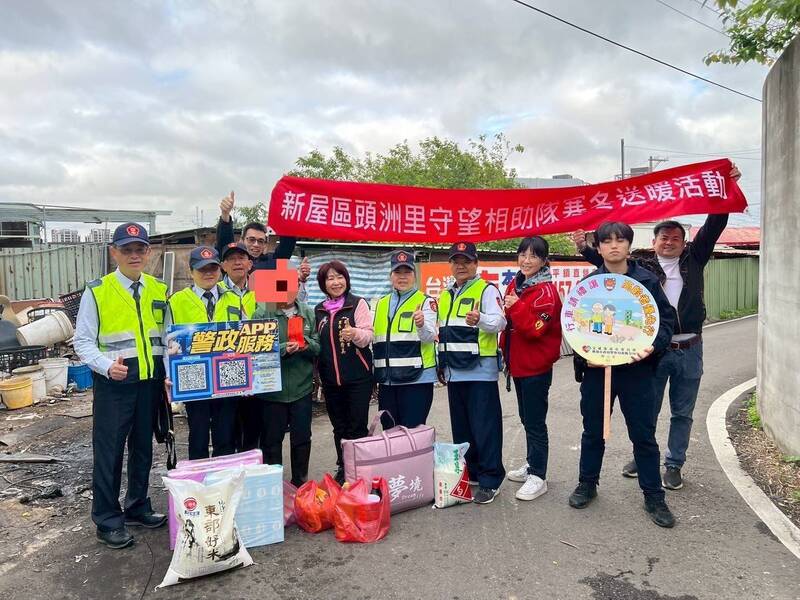 桃園市楊梅警分局頭洲派出所邀集轄內熱心人士、企業、團體,共同舉辦「寒冬送暖暨反詐騙宣導關懷活動」,募集泡麵、衛生紙等民生用品,分送到派出所轄內的弱勢家庭、拾荒獨居長者,盼助他們能過個開開心心的春節假期。