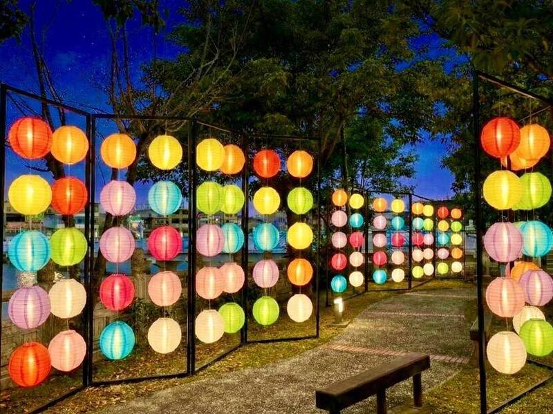 夜晚可順遊龍潭大池燈會,欣賞主題地景藝術燈區,在湖畔光影中沈浸在元宵節慶氛圍。(示意圖,桃市客家事務局提供)