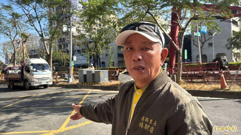 三民區德西里里長林財旺怒批中華二路管線施工太離譜,24小時不休息害里民晚上無被吵到無法入睡。(記者許麗娟攝)