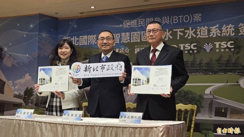 新北市長侯友宜擔任簽約見證人表示,隨著AI、智慧製造等高科技產業快速發展,企業對於用地條件、環境品質與營運穩定度的要求越來越高,完善的污水下水道系統成為產業園區吸引企業落地的重要指標,市府在林口開發新北國際AI+智慧園區,除積極招商、完善產業鏈布局外,更以前瞻角度建設高標準公共設施,讓產業發展與環境保護並進。透過污水處理設計,可降低噪音與異味影響,也能提升綠覆率與景觀品質,打造企業安心進駐、長期深耕的優質環境。