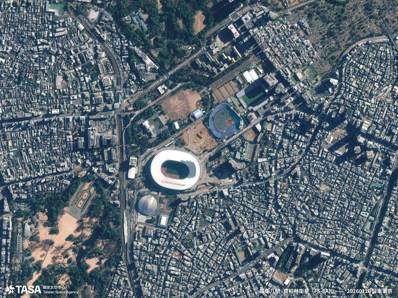 太空中心公布福衛八號首顆「齊柏林衛星」的彩色融合影像,圖為日本東京國立競技場。(太空中心提供)