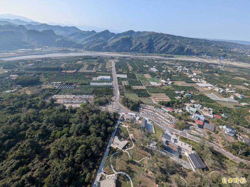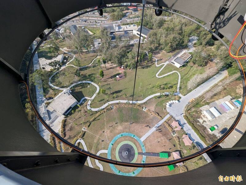 氦氣球升高至168公尺,乘客360度賞景,其中可看到鳥嘴潭6個人工湖和國度6號。(記者陳鳳麗攝)
