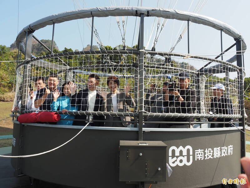 標榜亞洲第3座、南投縣政府以OT方式開發營運的「九九峰氦氣球樂園」,今天啟用並試營運,開放南投鄉親限量體驗,南投縣長許淑華也邀請立院副院長江啟臣等人搭乘,該座繫留式氦氣球最高可至300公尺高,今天則高飛至象徵「一路發」的168公尺,停留空中讓搭乘者360度賞景。