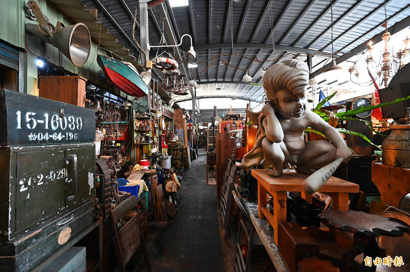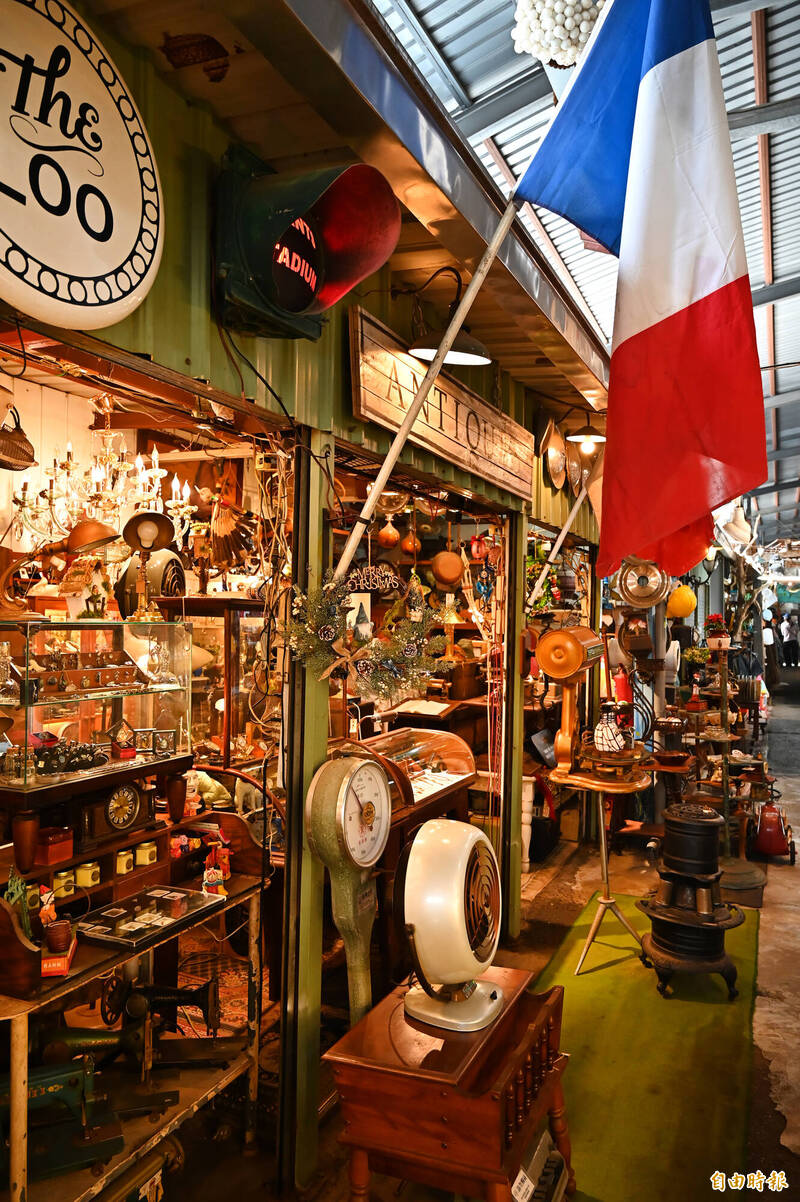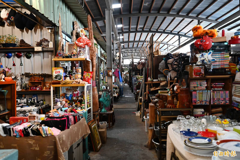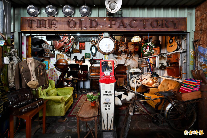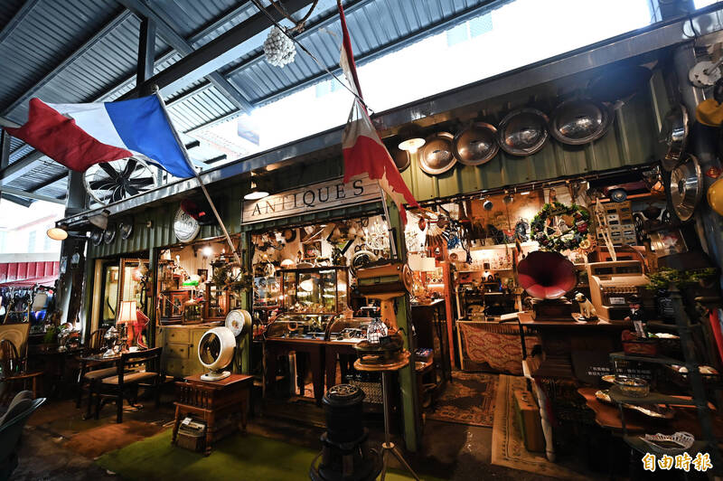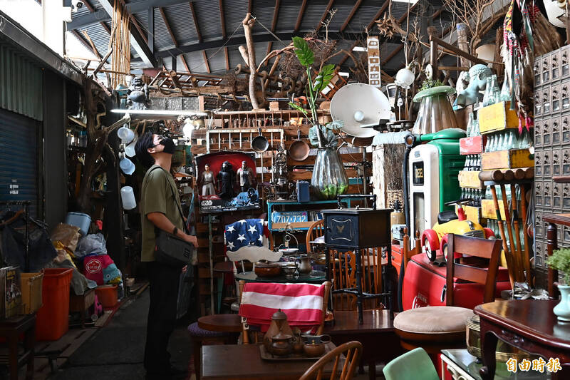 內惟跳蚤市場後面的店面攤位,宛如進入「時光隧道」。(記者李惠洲攝)