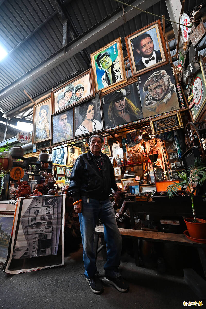 內惟跳蚤市場中,隱藏著國寶級的電影看板畫師曾清田老師。(記者李惠洲攝)