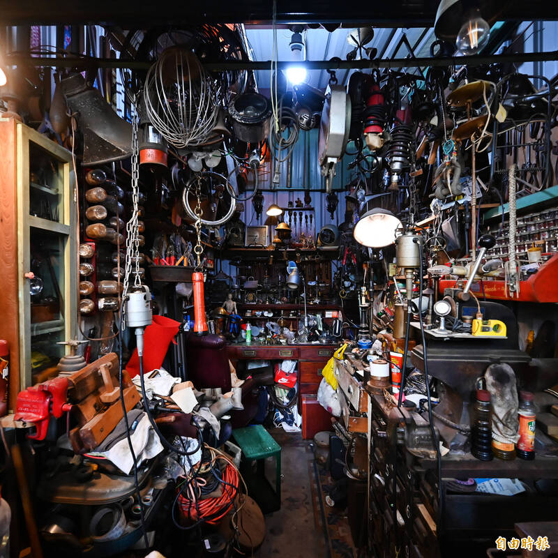 來自美國的的「歷史生存者古董店History Survivors」外國老闆在店內設有工作室維修骨董。(記者李惠洲攝)