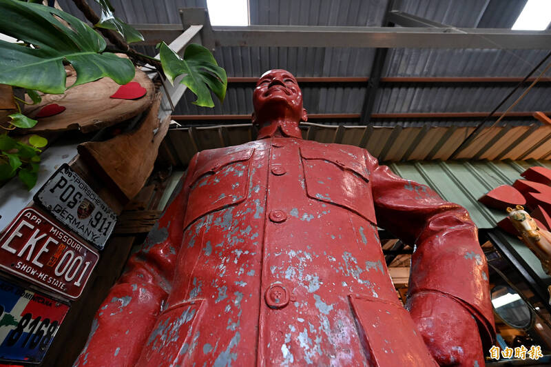 內惟跳蚤市場裡面竟然有蔣介石雕像。(記者李惠洲攝)