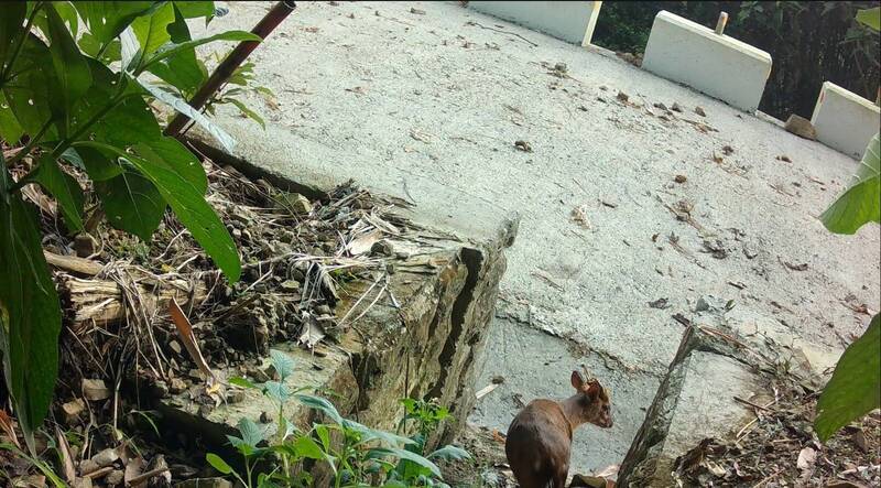 台南楠西與南化間的南山林道緩坡通道發現山羌蹤跡。(嘉義林保署提供)