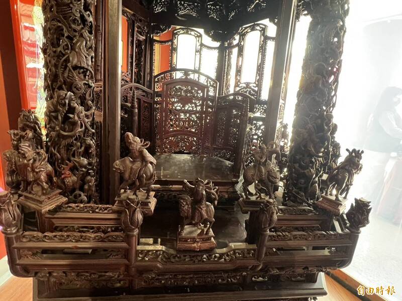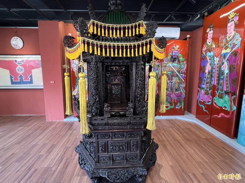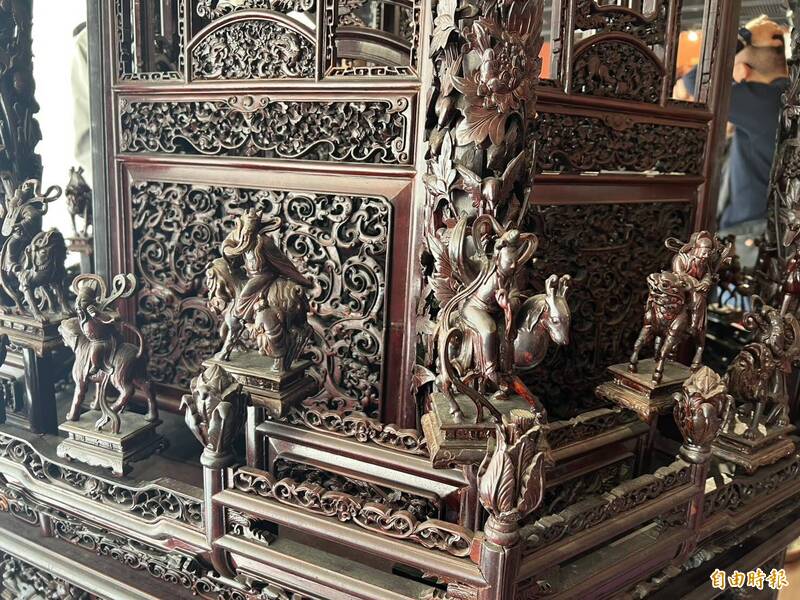 朝天宮第1代祖媽轎,1912年完工,是全國第一座六角神轎,雕工細緻。(記者黃淑莉攝)