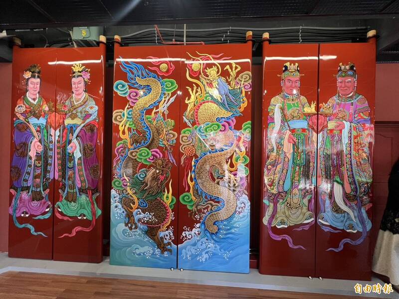 朝天宮委託人間國賓彩繪大師洪平順繪製的新門神。(記者黃淑莉攝)