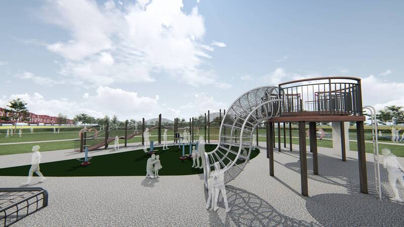 圖為西螺大橋北岸景觀公園模擬圖。(彰縣府提供)