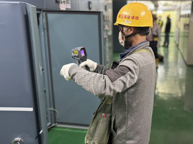 台電人員使用熱顯像儀巡視受電設備。(彰基提供)