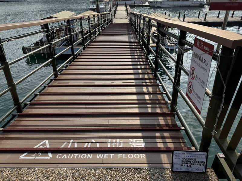 另考量止滑條對輪椅族、推車,以及行動不便者在行進時造成顛簸情況,因此在各碼頭的右側引橋仍維持原有的斜坡道,並由現場保全人員加強引導與協助,兼顧通行安全與無障礙需求,呼籲遊客在枯水期上、下船應緊握引橋扶手,以維護自身安全。