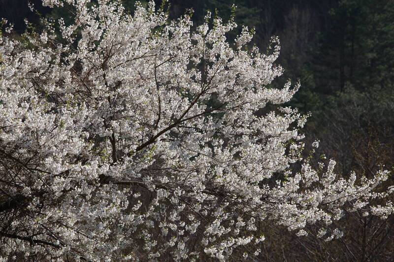 雪霸園區除了武陵櫻花,也有許多野生櫻花正陸續綻放;圖為開花的霧社櫻。(雪管處提供)