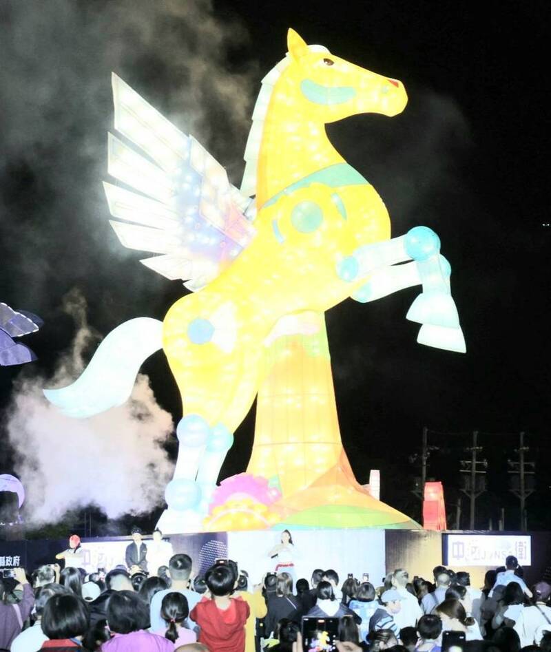 南投燈會今年主燈「凌光之翼」,採飛馬造型設計。(南投縣政府提供)
