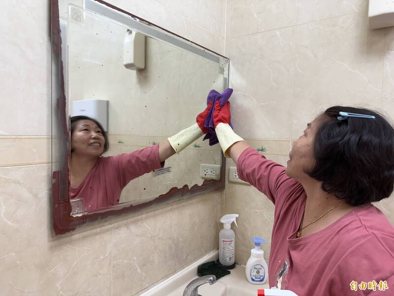林彩雲(左)透過虎尾就業中心媒合到兼職清潔員工作,也讓她開心地說「心中的燈再度亮起」。(記者李文德攝)