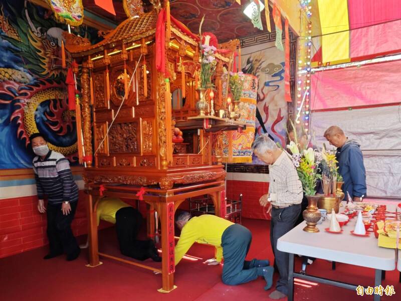 仁壽宮進行七星平安橋的搭設,迎請神明,虔誠參拜。(記者吳俊鋒攝)