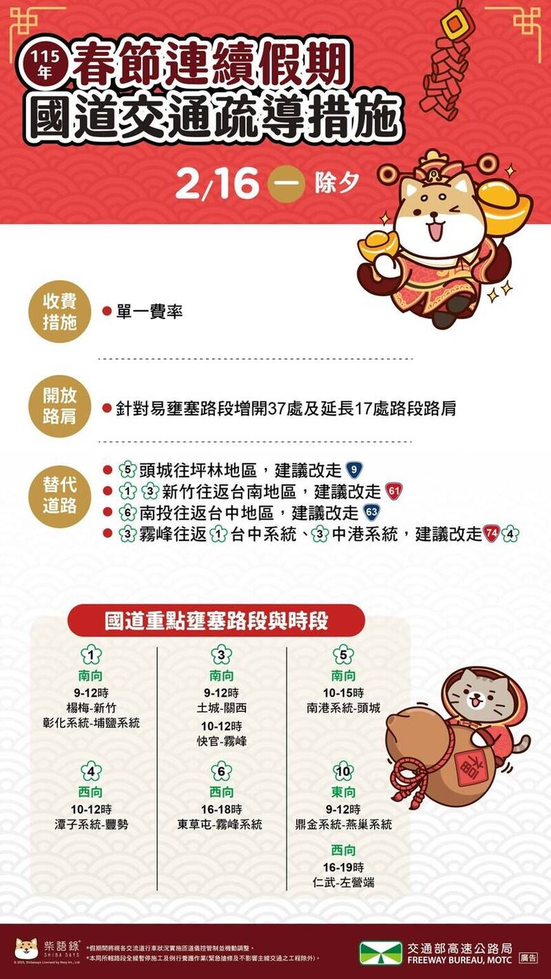 除夕國道疏導措施。(高公局提供)