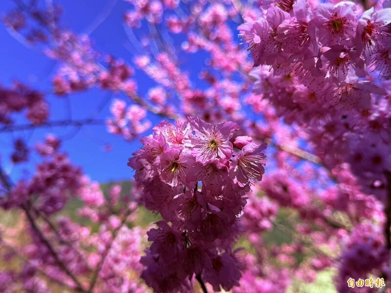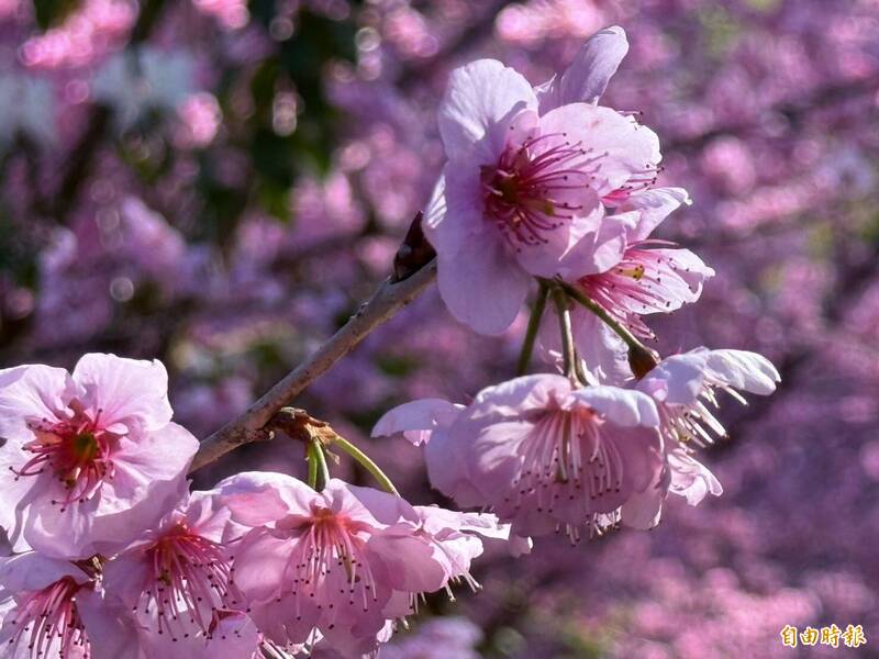 美人谷的櫻花已開超過5成,可欣賞滿山谷的「粉紅」美景。(記者李文德攝)