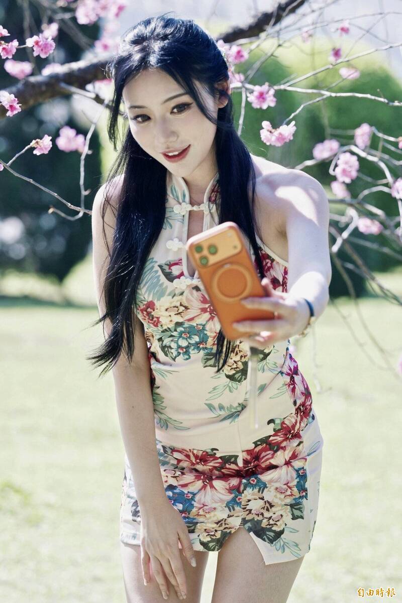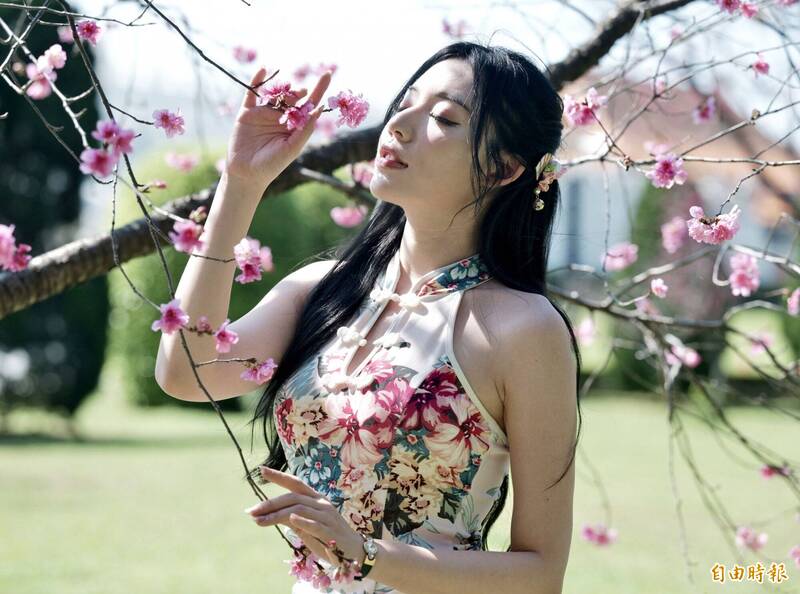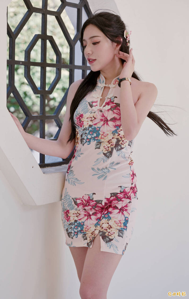 Kiki 凹凸有致的身材在旗袍勾勒下更顯玲瓏。她笑說,旗袍最能展現東方女性的韌性與美感。(記者王藝菘攝)