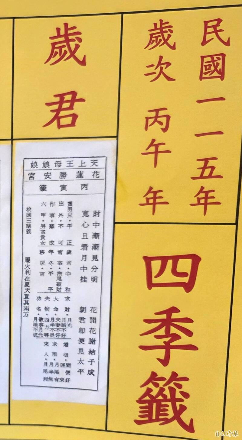 花蓮勝安宮今年國運籤抽到丙寅,財運走中上運。(記者花孟璟攝)
