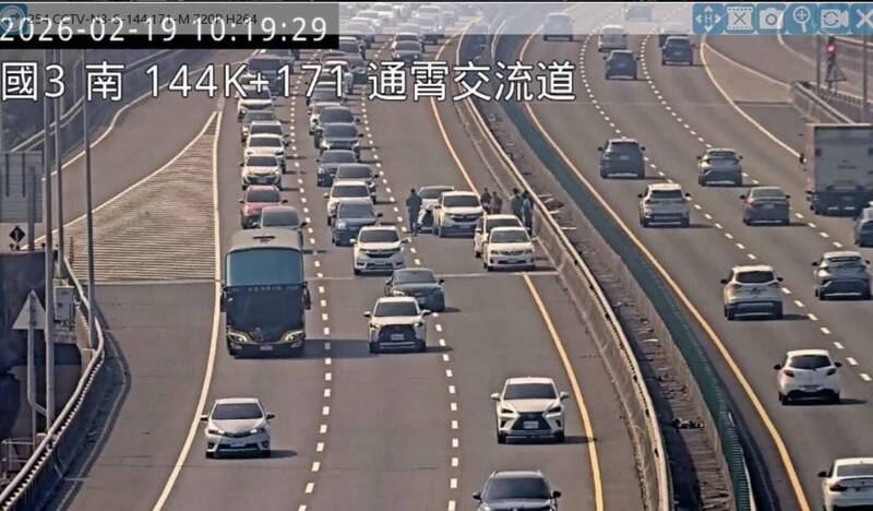 初三上午10點16分在國3北向144.8公里處發生4輛小客車追撞事故,占用內線車道,10點36分排除,造成後方車流回堵4公里。(高公局提供)