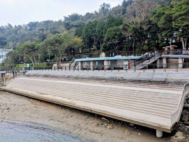 日管處表示,近期受降雨偏少影響,潭邊不僅可見落露土坡,朝霧碼頭岸邊階梯更全見底,管理日月潭水庫的台電公司為配合水利署調度用水,預計20日潭區水位將降至743公尺以下,屆時將導致碼頭引橋變得更陡。