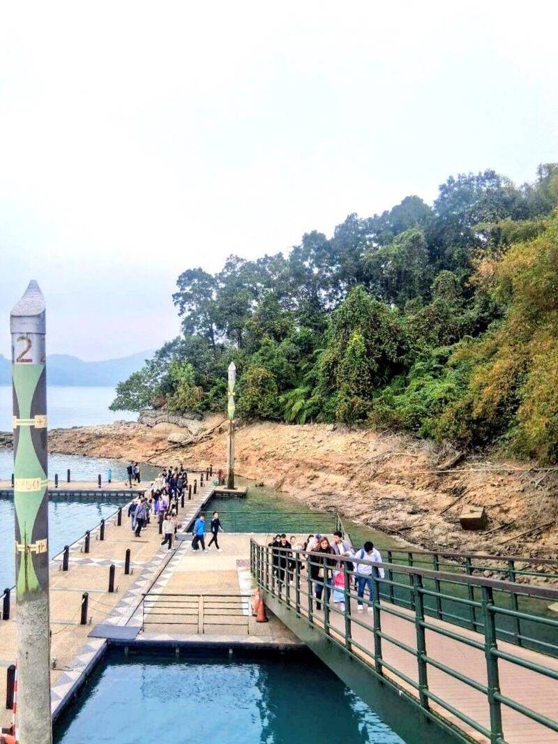 日管處也提醒,潭區適逢枯水期,碼頭引橋變得陡峭,遊客搭船行走時務必緊握扶手、留意腳步安全,並遵循現場保全人員引導,以免發生危險。