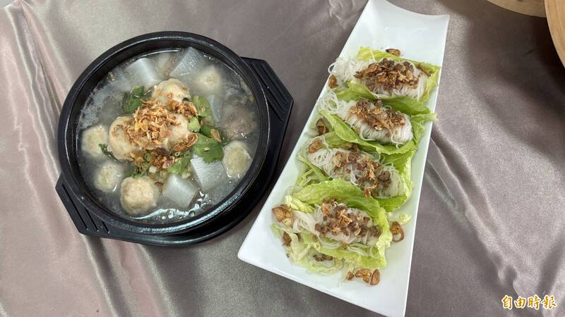 七股紅蔥頭節推出紅蔥香拌麵線、七股好丸湯免費品嘗。(記者楊金城攝)