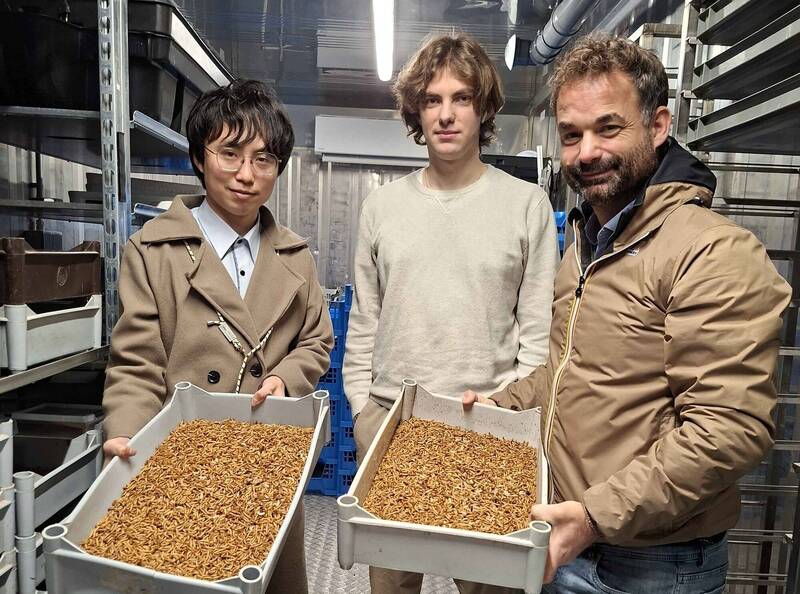 台南青年林韋成(左)訪問比利時孔多塞高等教育機構(Haute école Condorcet)昆蟲學實驗室。(圖由南市研考會提供)