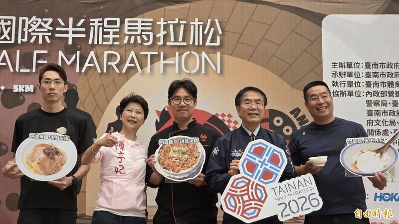 今年台南古都馬邀集多家米其林必比登推薦名店助陣,台南市長黃偉哲(右2)與南市立委陳亭妃(左2)聯袂宣傳。(記者洪瑞琴攝)