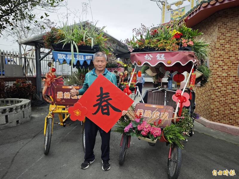 田尾花車踩街,將出動12台以盆花精心布置的「花卉香車」。(記者陳冠備攝)