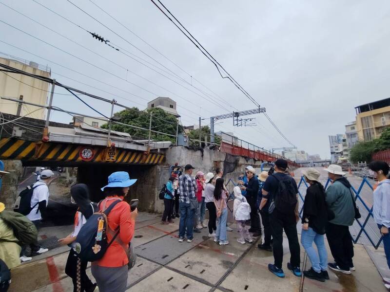 城東甜蜜美食散步活動參加者走讀光華街涵洞。(南市觀旅局提供)
