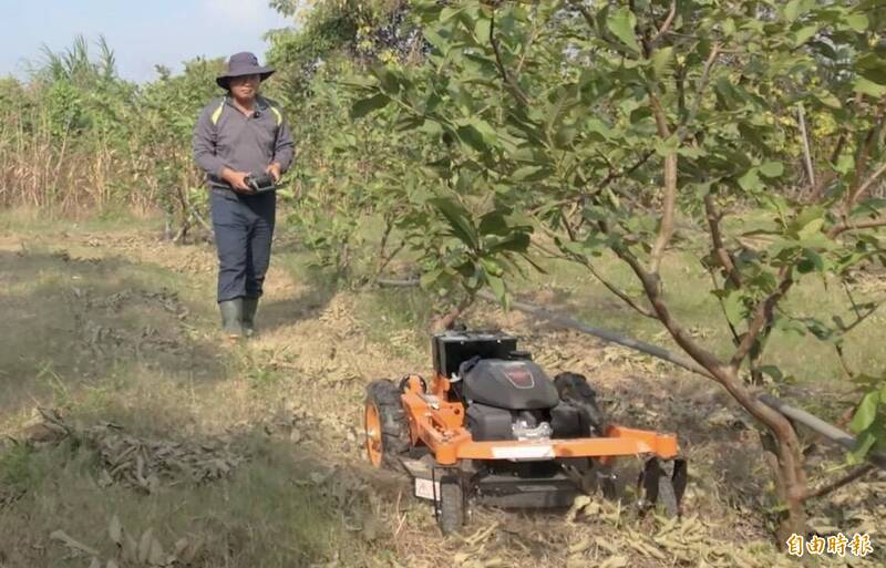 大社區行農生產合作社盧定楠導入遙控式割草機,以往除草需耗費大量體力與時間,且常遇到蟲咬、過敏、腰痛、中暑等狀況,導入遙控割草機後,原本0.6公頃芭樂園需要1個人花一整天才能完成除草,現在僅需半天即可完成。