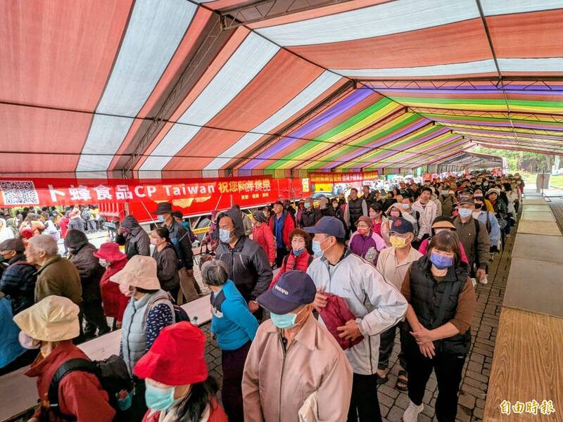 莊秋安也說,今吃丁酒活動吸引民眾大排長龍,現場至少湧入2萬多人排隊,此次準備10萬包、每包可供2人食用,每人可拿1包,因此民眾一定拿得到。