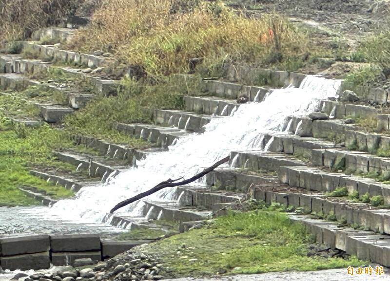 受惠這波強勁鋒面,仁義潭水庫進水略有增加。(記者蔡宗勳攝)