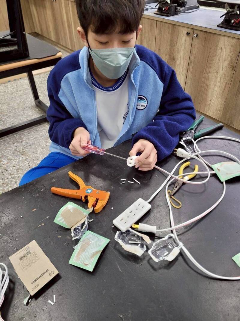 校長丁淑觀說,要讓孩子遠離3C成癮,學校這幾年在寒暑假都開辦動手作的水電達人研習課程,提供學生動手作及學習水電基本管路與配線的機會,最重要的是讓孩子動手作,了解日常生活中會遇到的各種水電問題,像馬桶出現漏水聲音或是浮球有問題該如何拆解?電線短路如何判斷?何謂大電與小電區別?家中的電路配線圖如何看?電腦鍵盤秀斗問題出在哪?這些生活上會遇到的各種水電疑難雜症,都可讓孩子透過實際動手拆解及安裝,認識及解決。