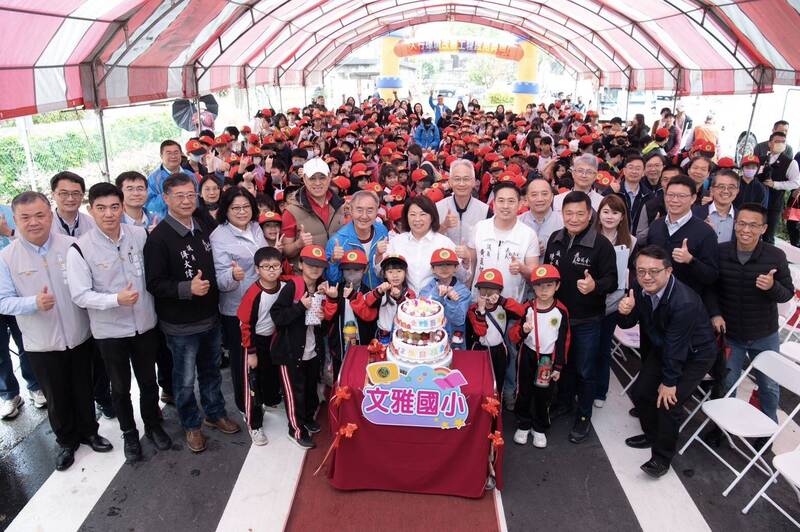 文雅國小今天舉辦18週年校慶及通學步道落成啟用儀式,市長黃敏惠說,市府將過去不平整、壅塞的人行步道及車道改造升級,成為校園周邊為學生安全量身打造的通學步道,接送道更加平整安全,將原本的加上周邊的綠化及植栽,展現綠意,被居民稱為「文雅香榭大道」。