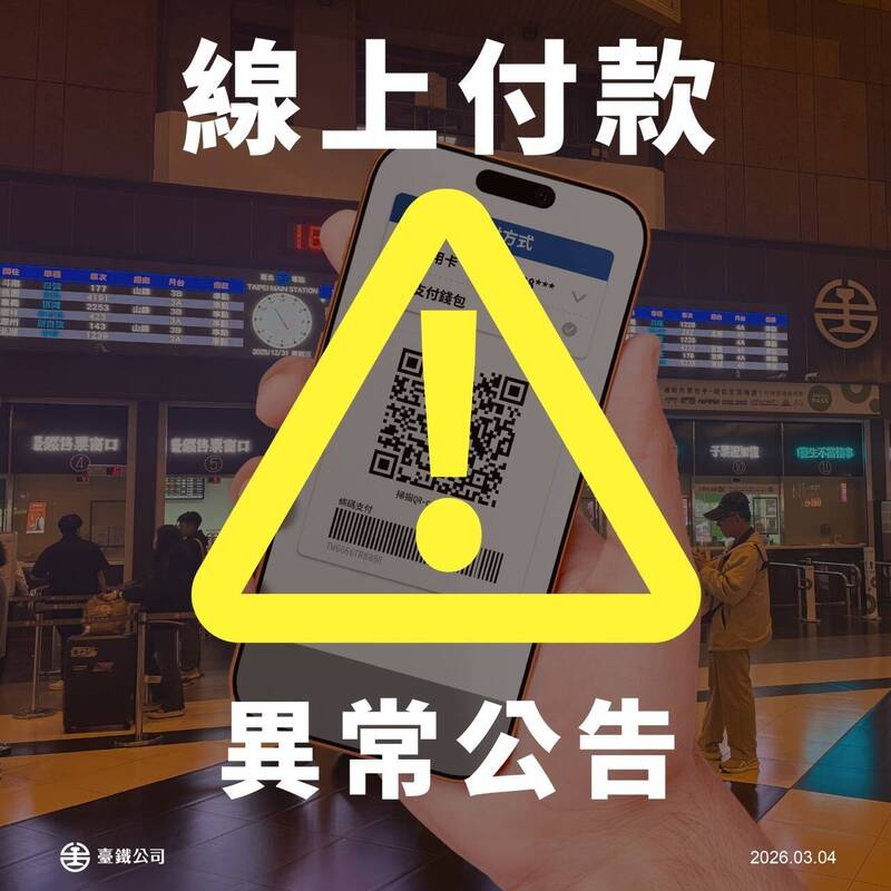 台鐵公司今天(4日)傍晚說明,車票網路付款功能,因收單銀行端與刷卡組織系統線路影響,部分VISA信用卡的線上支付功能,網路連線異常,3D驗證會失敗,銀行與發卡組織正全力修復中。