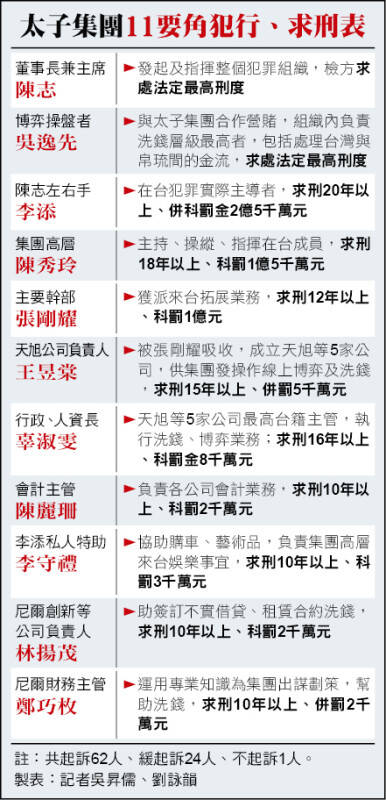 詳見在台洗錢108億元 太子集團62人起訴 首腦求處法定最高刑。