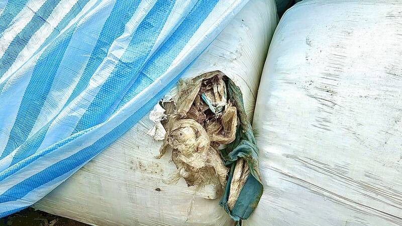垃圾太空包破損臭氣四溢。(何文海提供)