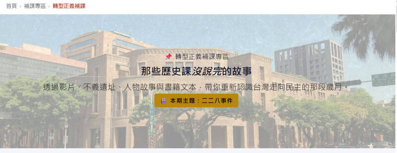 教育部今日推出「補課了沒?」人權及轉型正義教育專區,深化民主自由的認識和價值。(記者林曉雲翻攝官網)