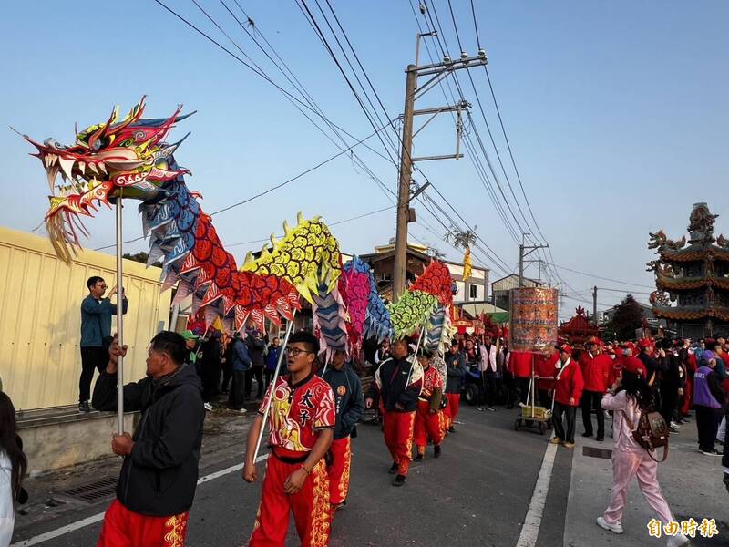 雲林縣定民俗「五股開臺尊王過爐」數千人隨香隊伍綿延數公里。(記者黃淑莉攝)