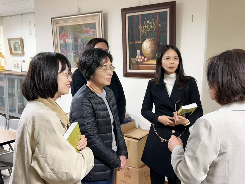 新竹縣政府文化局日前拜訪國史館台灣文獻館,了解目前新竹州圖書館圖書典藏保存維護狀況,及後續研究、展示等應用計畫,新竹議員蔡蕥鍹(右2)關切州圖返鄉計畫。(新竹議員蔡蕥鍹提供)