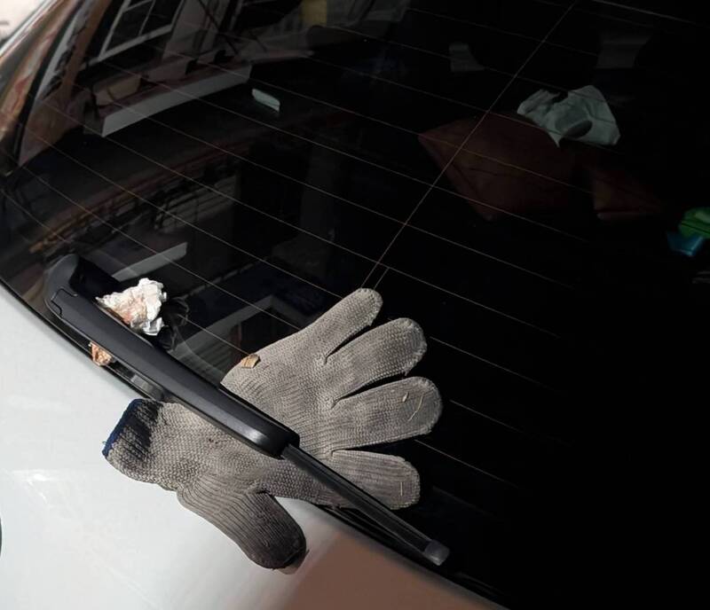 彰化和美近來出現「垃圾怪客」把髒手套夾在車子前擋雨刷處。(擷取自和美小鎮)